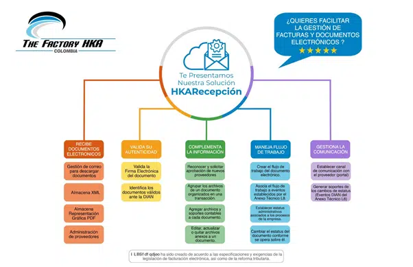Nuestra plataforma HKARecepción realiza todos los procesos asociados a la Recepción de Documentos Electrónicos, apegados a las Resoluciones de la DIAN, tales como, gestión de lectura automática de correo electrónico, radicación de documentos, gestión de Estatus de Documentos Electrónicos, informar los cambios de estatus all emisor y permitir el ingreso al portal proveedor donde pueden ser descargados los application, todo en cumplimiento con las recomendaciones y regulaciones de la DIAN.